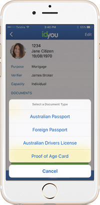 Select the document you would like to take a photo of. IDyou has a built-in workflow to guide you through the documents required to satisfy the VOI requirements. IDyou will prompt you with the requirements for each document and then allow you to take a photo of it. You’ll have the option to use or retake the photo. |